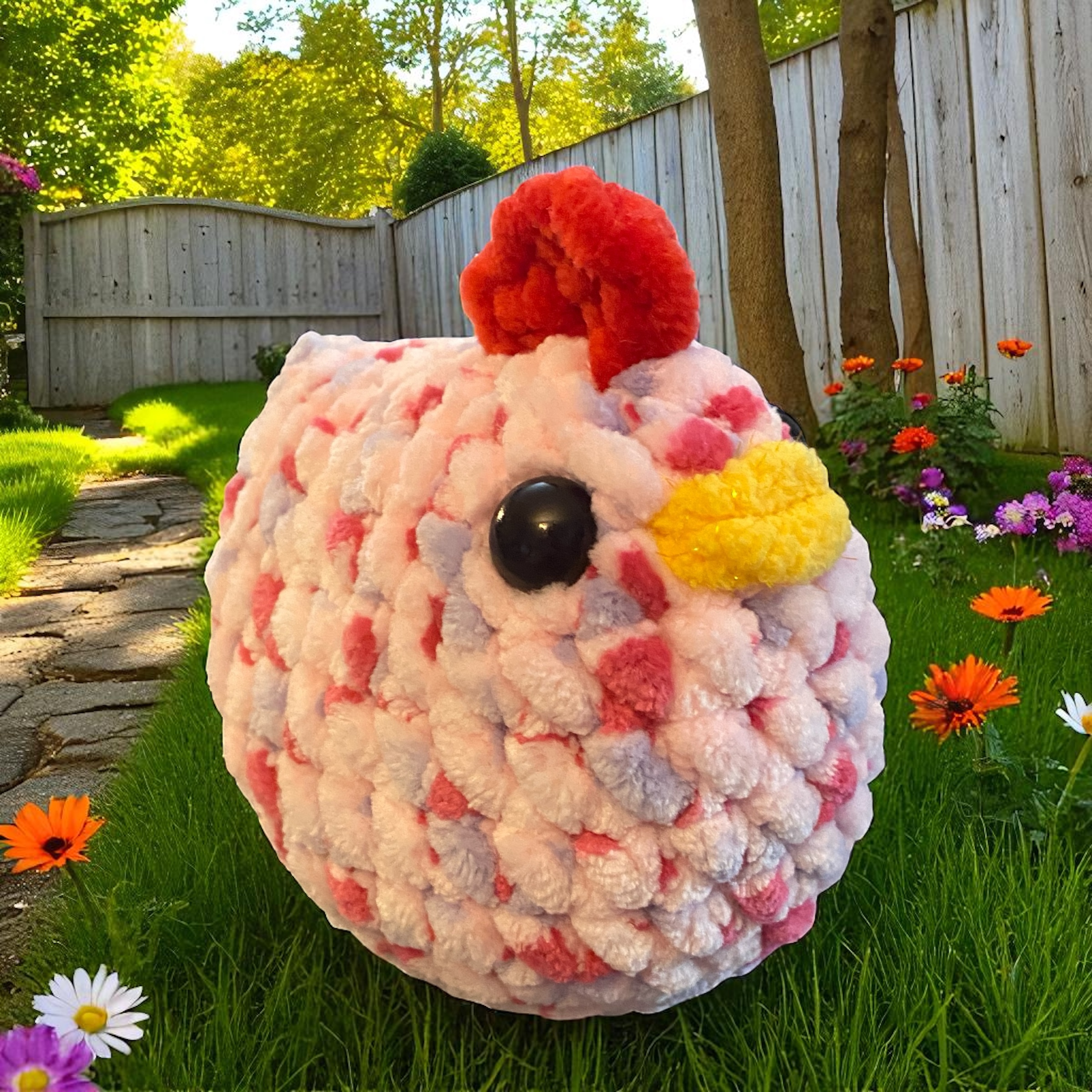 This chicken plushie features an adorable design and is made from soft, cuddly materials, making it a delightful companion for all ages. A perfect gift for any occasion, it's sure to bring smiles and comfort to everyone.
