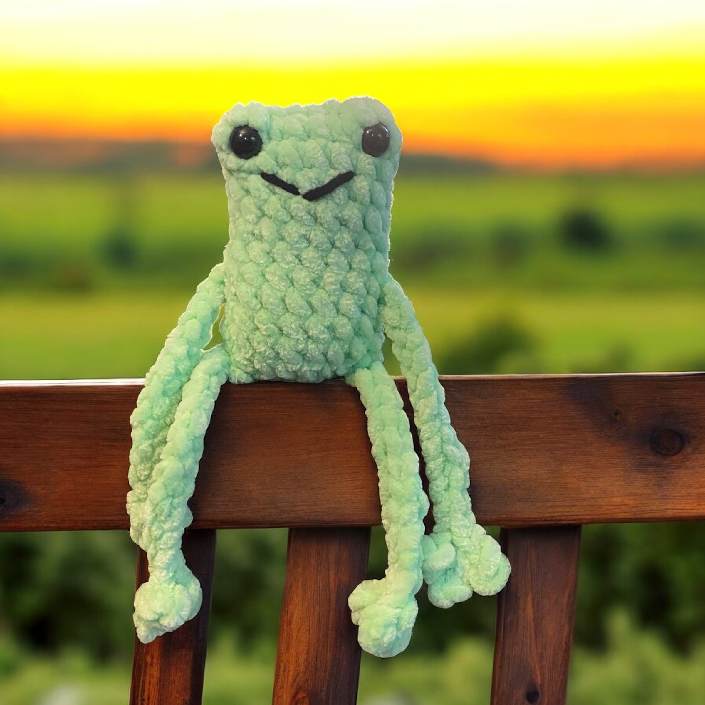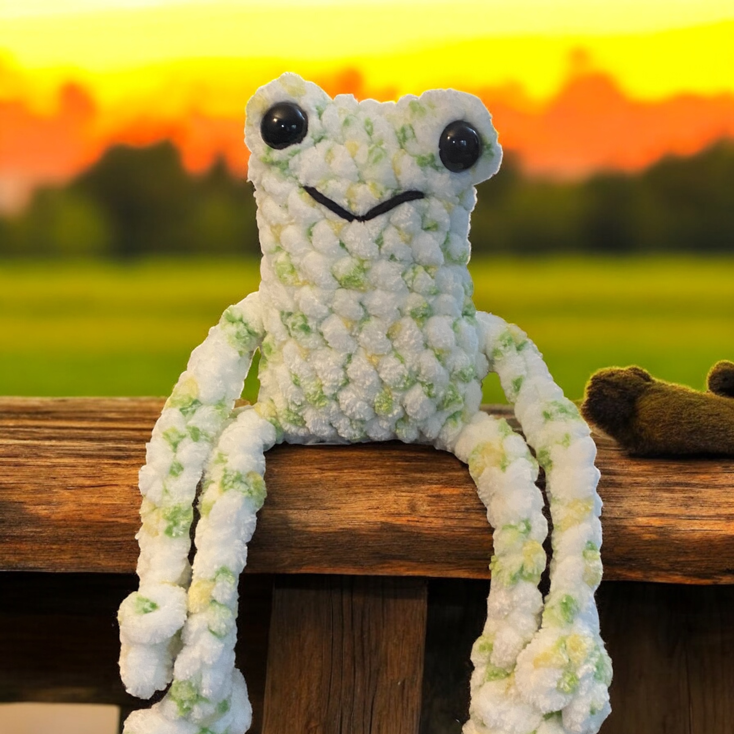 This soft, cuddly leggy frog stands about 3 inches tall, perfect for little hands to hug and play with. Its long legs add a fun, whimsical touch that makes it an adorable companion for playtime or snuggles. Bring home this charming frog to add a splash of joy and softness to any collection!